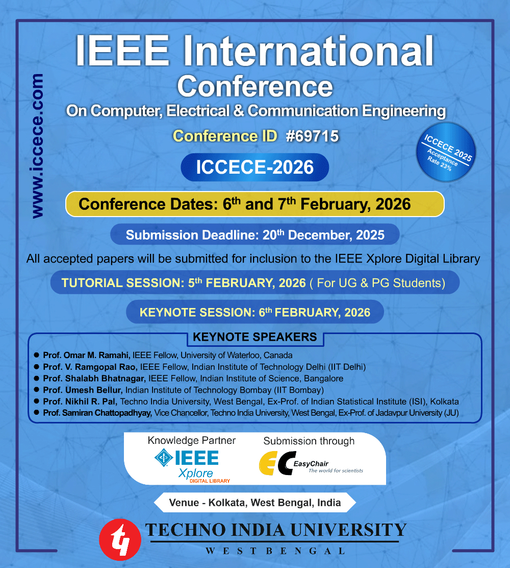 "ICCECE'17 by Techno India University, West Bengal is one of the best initiatives in the field of research innovations. I am glad and overwhelmed to be a part of such an innovative program where the presentation of the international research papers was altogether newness in the world of technology. I am sure of the huge success of this creative endeavour and wish Techno India the very best for it."