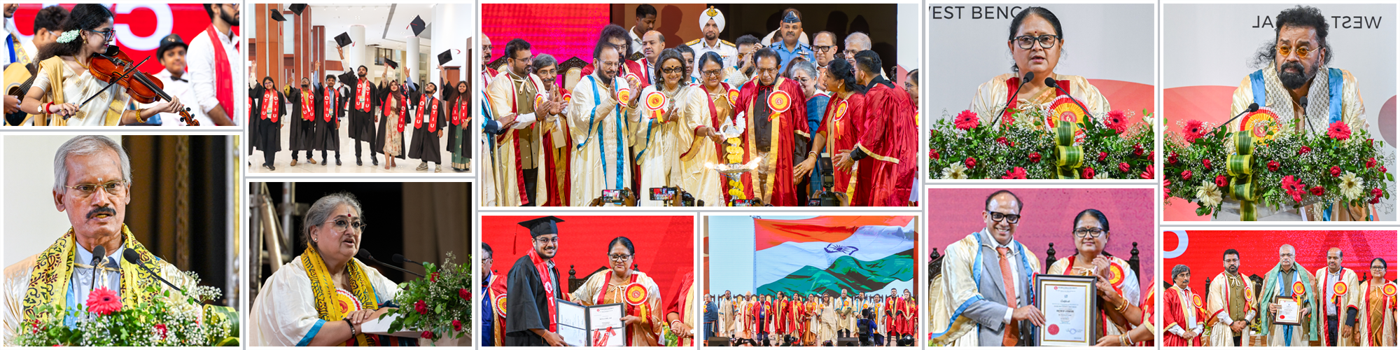 At the Annual Convocation Ceremony 2023, Techno India University proudly bestowed upon 4500+ students their Bachelor's, Master's and Doctoral Degrees. The Chief Guest was Padma Vibhushan Shri N. R. Narayana Murthy who delivered the Convocation Speech which created ripples far beyond the confines of the university space, making waves in the national media. Extraordinary individuals like Padma Vibhushan Shri Ratan N. Tata, Padma Shree Kavita Krishnamurthy, Shri Sourav Ganguly, Miss Sushmita Sen, Shri Shirshendu Mukhopadhyay, Dr. Tessy Thomas and others received honorary D. Litt degrees on this auspicious day. Present on this occasion were the Army and Navy Chiefs, the Directors of IIT, NIT, ISI and other top-tier educational institutions. In a much-lauded and innovative step, the gold medalists of various streams receieved their medals on the dais from the hands of their parents and guardians. It was a memorable occasion which created memories of a lifetime for all who attended.
